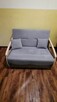 Wygodna, rozkładana sofa z pojemnikiem na pościel w szarym kolorze. Mebel w bardzo dobrym stanie, z drewnianymi ...